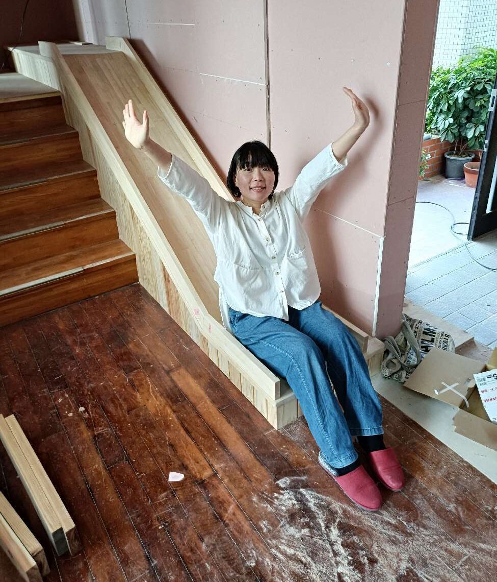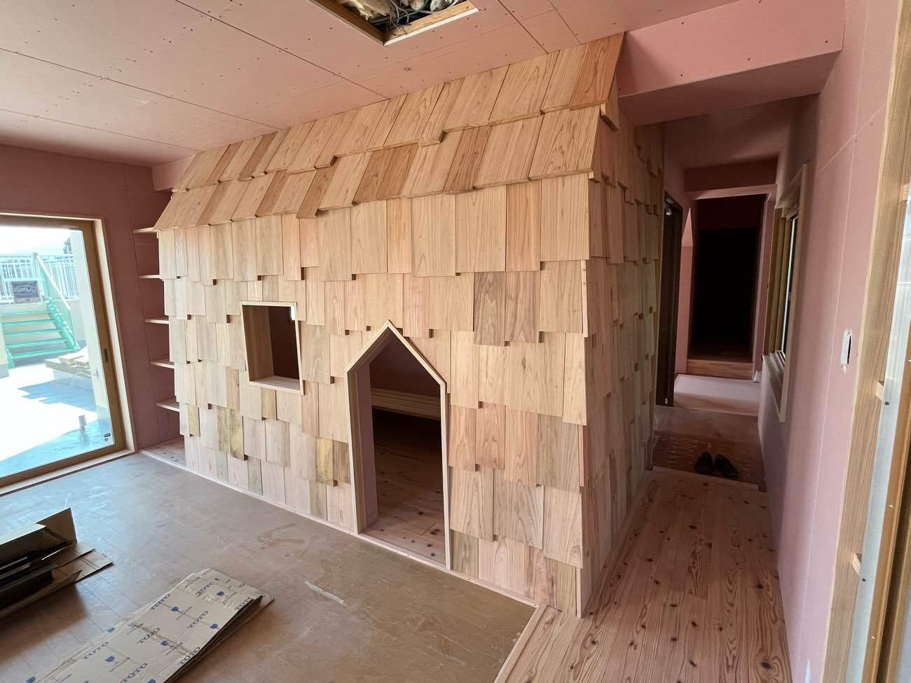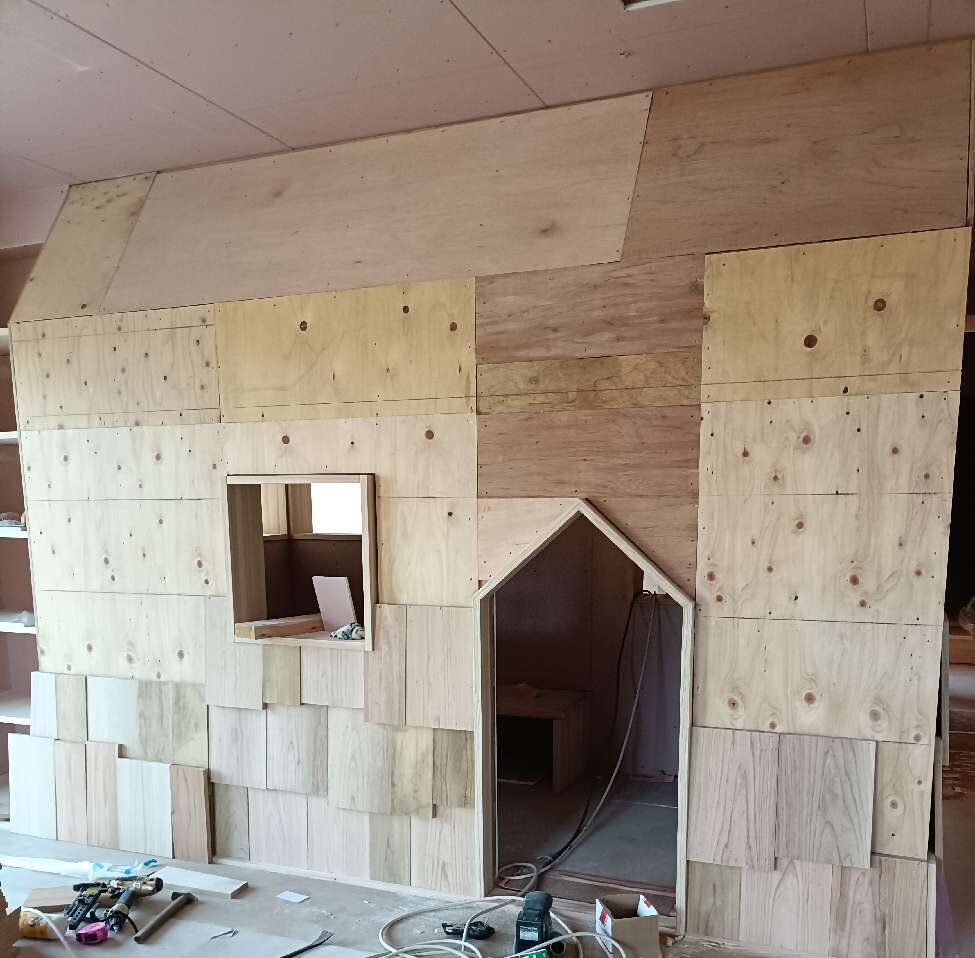大工さん自ら滑ってみて心地と強度を確認します🤭なんとも楽しそう。