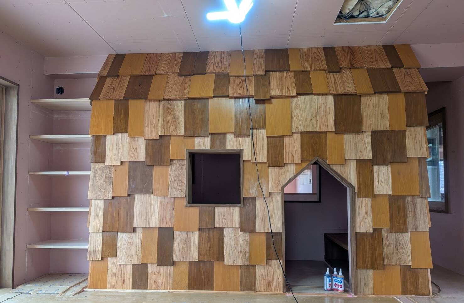 木が鎧状に貼られ、