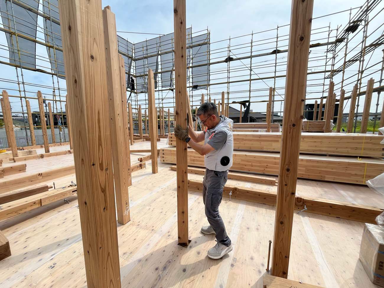 足場をたて、いよいよ建て方。
